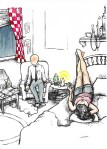 Since starting with Christmas cards in December I’ve had fun continuing with these 5” by 7” cards. It’s a way for me to turn my simple illustrations into something finished. All of the cards are original drawings printed through mostly serigraphy and a few with the computer. Every card has a final hand-added element, such as watercolor, cut paper, glitter, or stickers. All the images carry a strong implication of narrative but without a specific story told. The inside of the cards are blank leaving not just the story up to interpretation, but the purpose of the card itself. Hopefully the user of the card will write something unique and personal that has to do with the image and the person they are giving the card to.