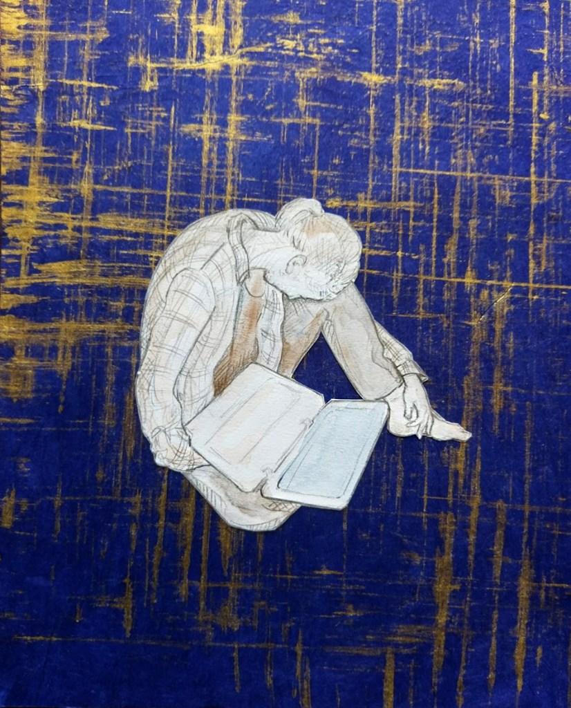 Previous ImageNext Image ComputerSpiral Computer Spiral: Cut Paper and Watercolor (about 8 by 10) ($45)