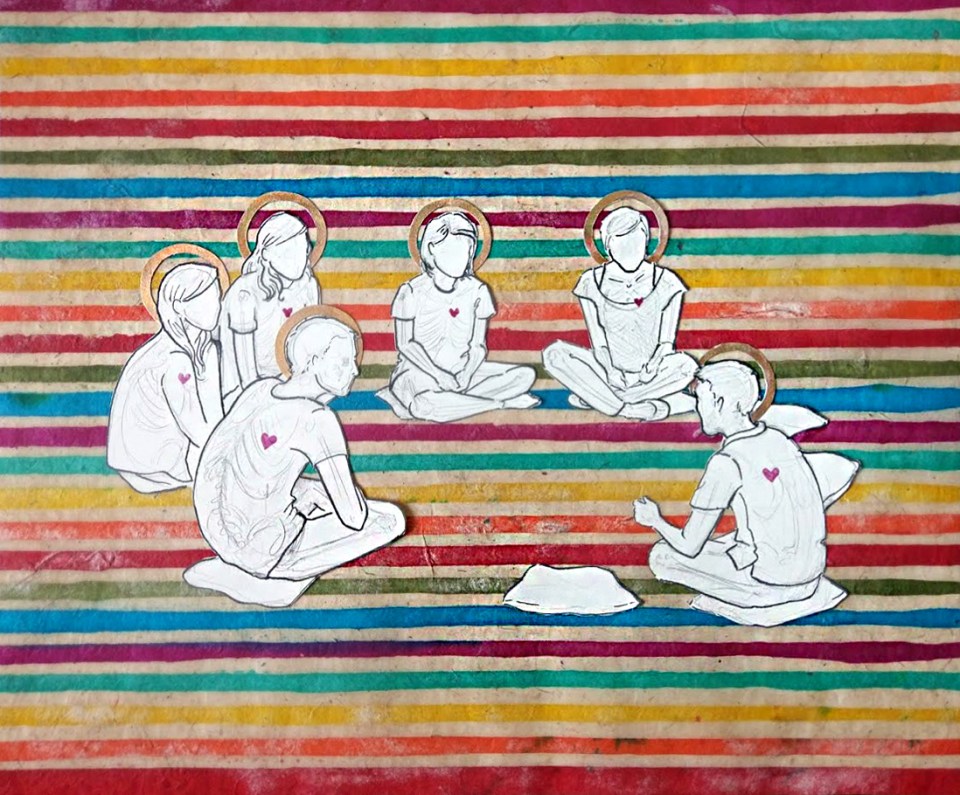 Saint Circle: Cut Paper and Watercolor (20” by 14”)